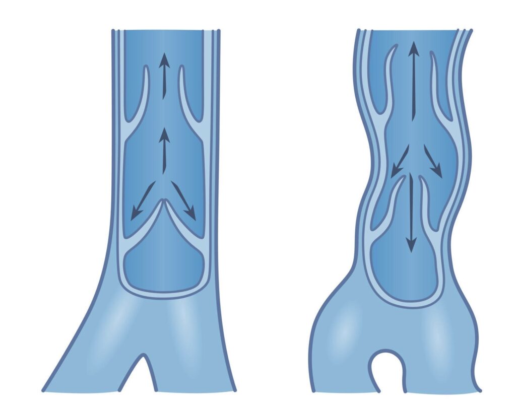 弁が正常に働いている状態 弁が壊れて逆流している状態